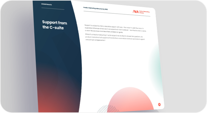 Global Results Product Marketing Salary Survey 2023 Support from Support is subjective. Many associate support with pay – the more I’m paid the more I’m the C-suite supported. Whereas others see it as support with their workload – how they’re able to create a work-life balance or achieve their professional goals. When it comes to measuring C-suite support, we wanted to answer two questions: Do product marketers feel supported? And is there a correlation between perceived support and annual compensation? 35