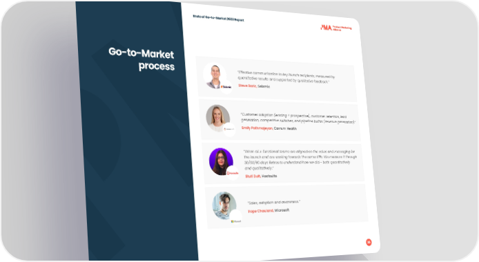 State of Go-to-Market 2023 Report Go-to-Market process “Effective communication to key launch recipients, measured by quantitative results and supported by qualitative feedback.” Steve Bozic, Seismic “Customer adoption (existing + prospective), customer retention, lead generation, competitive switches, and pipeline builds (revenue generation).” Emily Pathmajeyan, Carrum Health “When all x-functional teams are aligned on the value and messaging for the launch and are working towards the same KPIs. We measure it through 30/60/90 days Retros to understand how we did - both quantitatively and qualitatively.” Stuti Dutt, Hootsuite “Sales, adoption and awareness.” Hope Chauland, Microsoft 36