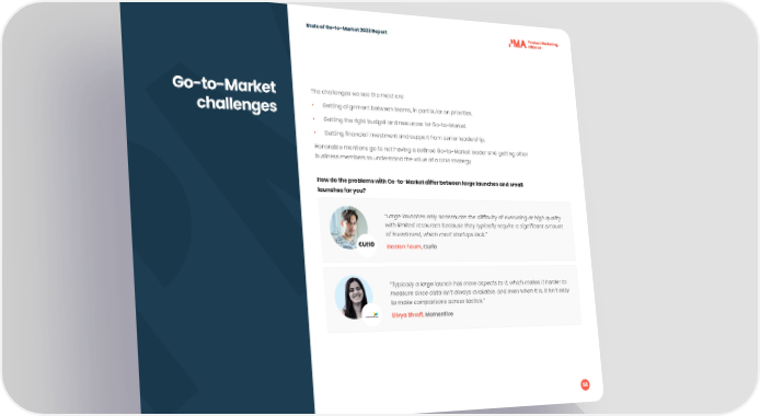 State of Go-to-Market 2023 Report Go-to-Market The challenges we see the most are: challenges • Getting alignment between teams, in particular on priorities. • Getting the right budget and resources for Go-to-Market. • Getting 昀椀nancial investment and support from senior leadership. Honorable mentions go to not having a de昀椀ned Go-to-Market leader and getting other business members to understand the value of a GTM strategy. How do the problems with Go-to-Market differ between large launches and small launches for you? “Large launches only accentuate the dif昀椀culty of executing at high quality with limited resources because they typically require a signi昀椀cant amount of investment, which most startups lack.” Gaston Tourn, Curio “Typically a large launch has more aspects to it, which makes it harder to measure since data isn’t always available, and even when it is, it isn’t easy to make comparisons across tactics.” Divya Shroff, Momentive 58