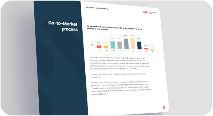 State of Go-to-Market 2023 Report Go-to-Market On a scale of 1 to 10, how would you rate your Go-to-Market processes’ level of process maturity and effectiveness? 20.5% 21.8% 14.1% 14.1% 15.4% 5.1% 5.1% 2.6% 0% 1.3% 1 2 3 4 5 6 7 8 9 10 At this point, it’s interesting to note that the length of time spent on big launches compared to small launches was highly sporadic. We had multiple respondents who claimed to spend zero hours on small launches, while others professed to spend over 300. While very few responded with zero hours for time spent on big launches, enough respondents answered less than 10 for us to be curious about why. As a result, we looked into the correlation between time spent on launches and company size. We found for the most part that early pre-product market 昀椀t companies and early post-product market 昀椀t companies are spending the least team on big launches, with the majority spending 25 hours or less. That said, while the majority of early post-product market 昀椀t respondents said less than 25 hours, the next highest response was over 200 hours. 25