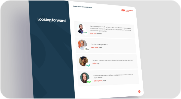 State of Go-to-Market 2023 Report Looking forward “Product Managers should not work in silo - PMs should let PMM aware of product plans when strategy is being built, not after a launch date is set/ committed to by executives.” John Milo, LeanData “Smaller, more agile teams.” Sean Storer, Slack “All teams must buy-into GTM and prioritize care & attention towards it.” Srijit G, Legl “Formalized approach to de昀椀ning prioritization of launches based on ROI/outcomes.” Bethany Miles, Sage 73