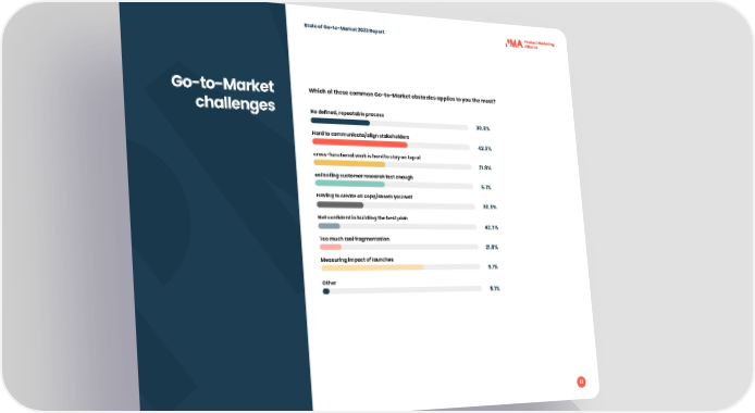 State of Go-to-Market 2023 Report Go-to-Market Which of these common Go-to-Market obstacles applies to you the most? challenges No de昀椀ned, repeatable process 30.8% Hard to communicate/align stakeholders 42.3% cross-functional work is hard to stay on top of 21.8% collecting customer research fast enough 5.1% Having to create all copy/assets yourself 30.8% Not con昀椀dent in building the best plan 42.3% Too much tool fragmentation 21.8% Measuring impact of launches 5.1% Other 5.1% 61