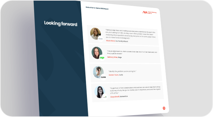 State of Go-to-Market 2023 Report Looking forward “Taking a step back and making sure everyone understands the goal. Who are you building for? Why do they care? What problem does this solve? Answering those questions and having everyone on the same page allows you to move forward strategically.” Nicole Ward, Our Family Wizard “Ensure alignment on what success looks like, how it will be measured, and how it will be shared.” Bethany Miles, Sage “Identify the problem you’re solving for.” Gaston Tourn, Curio “To get buy-in from stakeholders and partners, be sure to take them along a journey of why the go-to-market plan is important, and what the impact of it will be.” Divya Shroff, Momentive 70