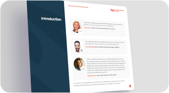 State of Product Marketing report 2023 Introduction “As product marketers, we create and tell the best story about products to generate revenue and drive growth for the organization.” Amy Owens, Director of Product Marketing at Time Doctor “We understand the need, understand the magic of your product, connect them both, and inform customers on why they actually need it.” Aman Bhardwaj, Senior Product Marketing Manager at DBSync “Product marketing takes products to market, working with the teams who build the products to ensure the voice of the customer is in the room during roadmap discussions, and then creating the right messaging and positioning for the products the teams are building. We then work with marketing to create the right content to tactically take those products to market, and collaborate with sales to make sure they’re con昀椀dent and successful in selling those products.” Stephanie Pye, Lead Product Marketer at Momentive So, having put some 昀椀gurative meat on the bones and familiarized ourselves with how product marketers view themselves, let’s meet the participants who contributed to this report… 8
