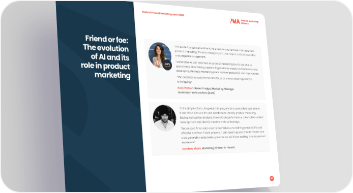 State of Product Marketing report 2023 Friend or foe: “I’m excited to see generative AI help reduce and remove rote tasks from The evolution product marketing. There’re many projects that require tactical execution and project management. of AI and its “Generative AI can help here so product marketing teams are able to role in product spend more time writing, researching customer needs and behaviors, and developing strategic marketing plans for their product(s) and organization. marketing “The potential to scale teams and focus on more complex problems is intriguing.” Holly Watson, Senior Product Marketing Manager at Amazon Web Services (AWS) “In it’s simplest form, AI speeds thing up, and is a productivity tool. Where it can shine is to use it’s vast database to identify product marketing tactics, competitor analysis, threshold on performance, automated content development and identify new channels to leverage. “We’ve used AI for voice over for our videos and training material; it’s cost effective and fast. If used properly it can speed up your time to market. The area generally needs better governance but it’s an exciting time for product marketers.” Sandeep Bhara, Marketing Director in Fintech 80