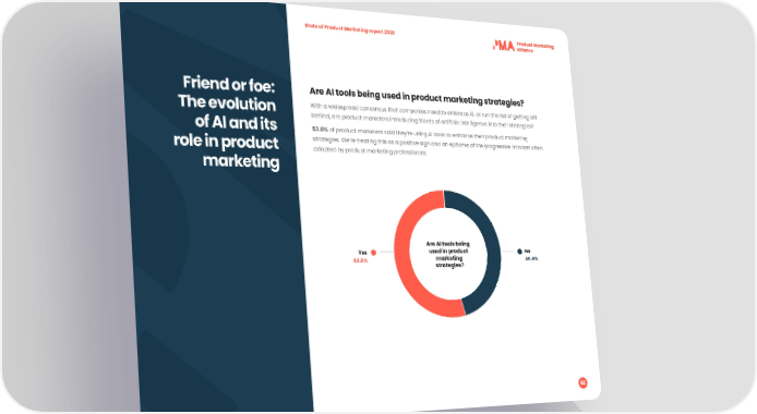 State of Product Marketing report 2023 Friend or foe: Are AI tools being used in product marketing strategies? The evolution With a widespread consensus that companies need to embrace AI, or run the risk of getting left behind, are product marketers introducing facets of arti昀椀cial intelligence into their strategies? of AI and its 53.6% of product marketers said they’re using AI tools to enhance their product marketing role in product strategies. We’re treating this as a positive sign and an epitome of the progressive mindset often marketing adopted by product marketing professionals. Are AI tools being Yes used in product No 53.6%53.6% marketing 46.4%46.4% strategies? 82