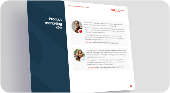 State of Product Marketing report 2023 Product “It’s imperative that product marketers share KPIs and metrics with other marketing internal teams, failure to do so, results in a lack of alignment. “My KPI’s are aligned with my counterparts in other departments and this is KPIs helpful as we’re all marching in the same direction with the same priority on adhering to these business priorities. “In other organisations, it hasn’t always been the case as what’s been important to me in my goals didn’t feature in my counterpart’s. Always remember, what gets measured gets done!” Amit Alagh, Senior Product Marketing Manager at LexisNexis “Sharing KPIs is crucial in running an agile business. It should also be a two- way street, meaning that other teams should share their KPIs with product marketing, too. If you’re not racking and sharing KPIs, then you risk losing opportunities, time, and revenue. “We share these in a variety of ways given that the team is global. In a nutshell, KPI updates are included in weekly launch update email, status review meetings, and quarterly/annual reviews.” Jen Bunting, Head of Product Marketing EMEA & LATAM at LinkedIn 64
