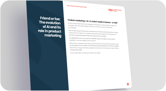 State of Product Marketing report 2023 Friend or foe: Product marketing + AI = A match made in heaven - or hell? The evolution For all of the excitement and furore driving the AI discussion, the same question is asked time and again: with technology thriving, will the point come when humans are replaced of AI and its by machines? role in product After all, when we go to the grocery store, self-service checkouts are replacing checkout clerks, automated phone systems are replacing receptionists, and programs like Hemingway and marketing Grammarly have proofreaders looking nervously over their shoulders… So, taking this into account, are product marketers right to be looking at AI tools without trepidation, or are they digging their own grave? When product marketers were asked to rank the likelihood of their roles being deemed surplus to requirements (for some tasks, at least) following the development of AI, the results suggest they won’t be having robot-induced nightmares anytime soon, with responses generating an average rating of 3.2. For your sake, PMMs, we hope your instincts are correct! 87