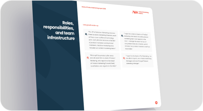 State of Product Marketing report 2023 Roles, Late growth scale-up responsibilities, “I report to a Senior Director of Product “The VP of Solutions Marketing oversees and team three Solutions Marketing Directors; each Marketing who leads the entire product of these cover a different technology marketing team and reports to the infrastructure area. Each Director oversees a handful CMO. I manage the team for two of of product marketers and technical our product lines as a Director, which marketers. Solutions marketing also includes two product marketers and two includes our content marketing team.” associates.” “We’re split by product pillar areas “I report to the Senior VP of Marketing. I’ve and all report into a Head of Product two direct reports; one Product Marketing Marketing, who reports to the Head Manager and one Principal Product of Product Marketing/Growth/Web/ Marketing Manager.” Localization, who reports to the CMO.” 39