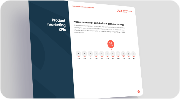 State of Product Marketing report 2023 Product Product marketing’s contribution to goals and strategy marketing To establish how much product marketers feel they contribute to KPIs and metrics at their company, we asked participants to rate their input on a scale of 0 - 10. 10 being the most KPIs in昀氀uential and 0 the least in昀氀uential. This generated an average rating of 5.9 out of 10, 0.6 lower than 2022. 5.9 Average 0 1 2 3 4 5 6 7 8 9 10 5.3% 4.6% 2% 7.9% 11.3% 13.2% 8.6% 9.9% 17.2% 5.3% 14.6% 62