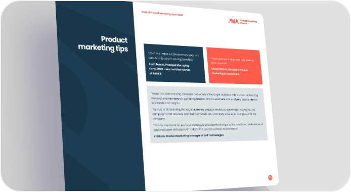 State of Product Marketing report 2023 Product marketing tips “Don’t talk inside out (feature focused), talk “Know your technology and help sales to outside in (problem solving/bene昀椀ts).” drive revenue.” Scott Fasser, Principal Managing Shefali Chinni, Director of Product Consultant - MarTech/MarComm Marketing at Lookout Inc. at Point B “Focus on understanding the needs and wants of the target audience. This involves conducting thorough market research, gathering feedback from customers, and analyzing data to identify key trends and insights. “By truly understanding the target audience, product marketers can create messaging and campaigns that resonate with their customers and ultimately drive sales and growth for the company. “It’s also important for you to be adaptable and open to change, as the needs and preferences of customers can shift quickly in today’s fast-paced business environment.” Phil Lora, Product Marketing Manager at Dell Technologies 121
