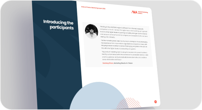 State of Product Marketing report 2023 Introducing the “Working in the UAE/MENA region is different from the west, especially participants compared to the US. I believe this region has a lot of catching up in general to do to drive higher levels of pyschoglical safety, stronger communication and sense of community and my company is no exception to this and as a startup, life is frenetic. “As the marketing lead, I see it as my duty to champion this by leveraging my experience from more mature organisations and partner closely with the people team to deliver a sense of belonging and pride in the work as this will drive higher levels of productivity and growth. “My product marketing team is setup for success in its pursuit to drive a healthy cutlure because it’s the connective tissue between product, sales and the customer, and automatically breaks down silos and creates a sense of direction and focus.” Sandeep Bhara, Marketing Director in Fintech 17