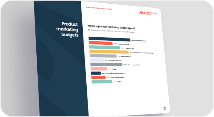 State of Product Marketing report 2023 Product Where is product marketing budget spent? marketing NB: Respondents could select more than one option for this question. budgets 26.5%26.5% - Software and tools 14.6%14.6% - Customer research 19.2%19.2% - Written content 24.5% - Conferences and networking events 16.6%16.6% - Paid advertising 8.6%8.6% - Competitive research 19.9%19.9% - Video creation/editing 9.9%9.9% - Design 6%6% - Training/professional development 8.6%8.6% - Hiring and recruitment 12.6%12.6% - Other 94