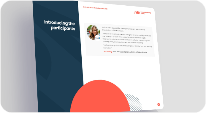 State of Product Marketing report 2023 Introducing the “Culture is the responsibility of every employee and is an incredibly participants important part of life at LinkedIn. “We focus on trust, transformation, acting like an owner, inspiring excellence, and honesty – for each other, our customers, our members, and the wider community. Our culture and values are re昀氀ected in everything from planning, hiring, talent development, and our ways of working. “Having a strong culture allows each employee to do the best work and help each other.” Jen Bunting, Head of Product Marketing EMEA & LATAM at LinkedIn 20